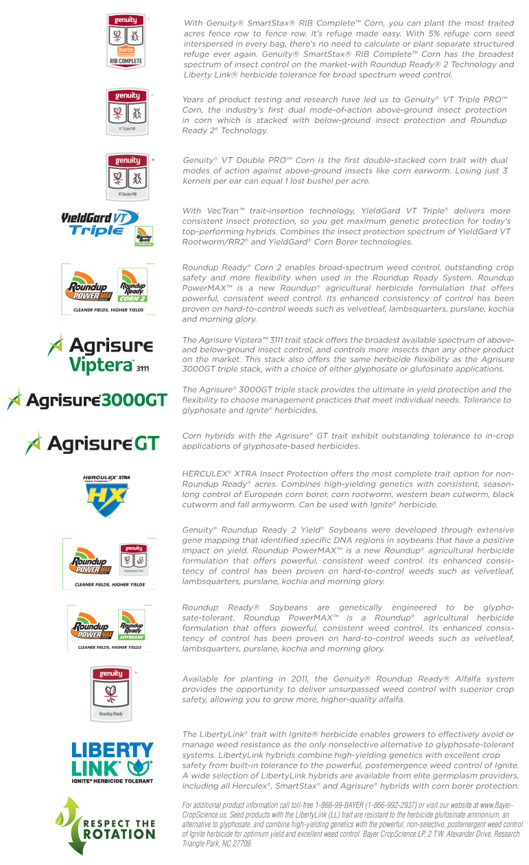 STEYER is the largest family owned independent seed dealer in this country. They have excellent seed with all the latest technology and genetics. They have excellent competitive prices. They are not limited to the technology of any one company, but instead they use the best technology and best characteristics from all the companies. They have Roundup Ready ®, Roundup Ready 2 ®, GT ®, triple stack ®, Genuity ®, Liberty Link ® and other traits available. They are developing new varieties all the time. More important they have outstanding yields. We have both pre-pay discounts and quantity discounts on their seed.